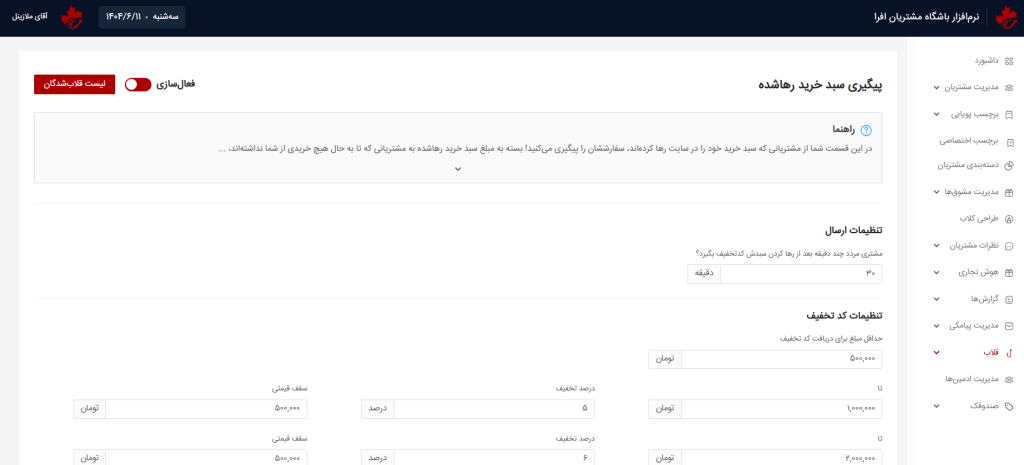 ۲. امکانات متنوع و حرفهای: افزونه باشگاه مشتریان وردپرس افرا شامل امکانات متنوع و حرفهای است که میتواند تضمین کنندهی تکرار خرید مشتریان باشد امکانات نرم افزار باشگاه مشتریان از جمله: