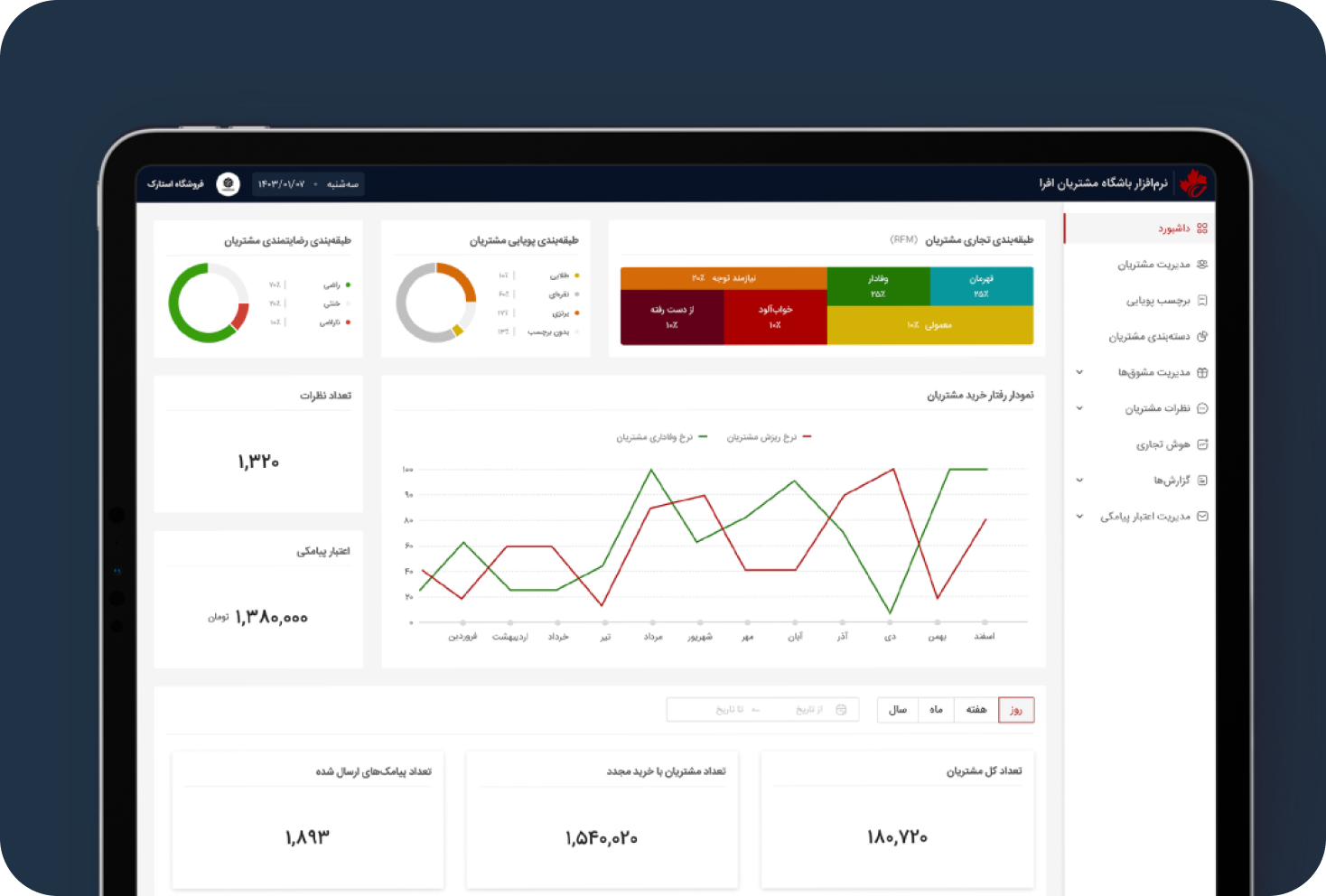 ارائه گزارشها و تحلیلهای جامع از رفتار و خریدهای مشتریان و نتایج نظرسنجیها و پیشنهادات.